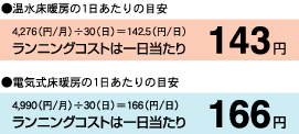 たとえば8畳用の床暖房でランニングコストを比較してみると…